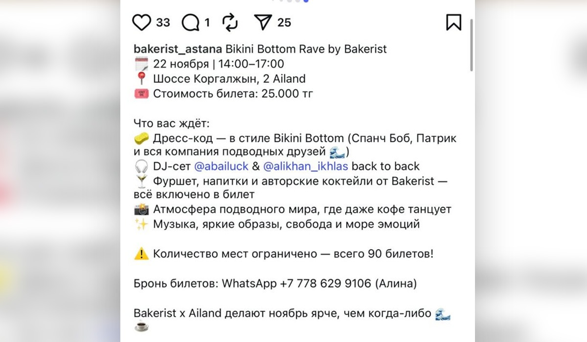 «Біз Ailand океанариумында жоспарланған кофе‑рейвті тоқтату туралы шешім қабылдадық. Іс-шараны ұйымдастыру кезінде команда алаңның техникалық талаптары мен ұсыныстарын мұқият ескерді, және біздің мақсатымыз океанариум жануарларына зиян келтіру немесе олардың тыныштығын бұзу емес еді», - делінген хабарламада.