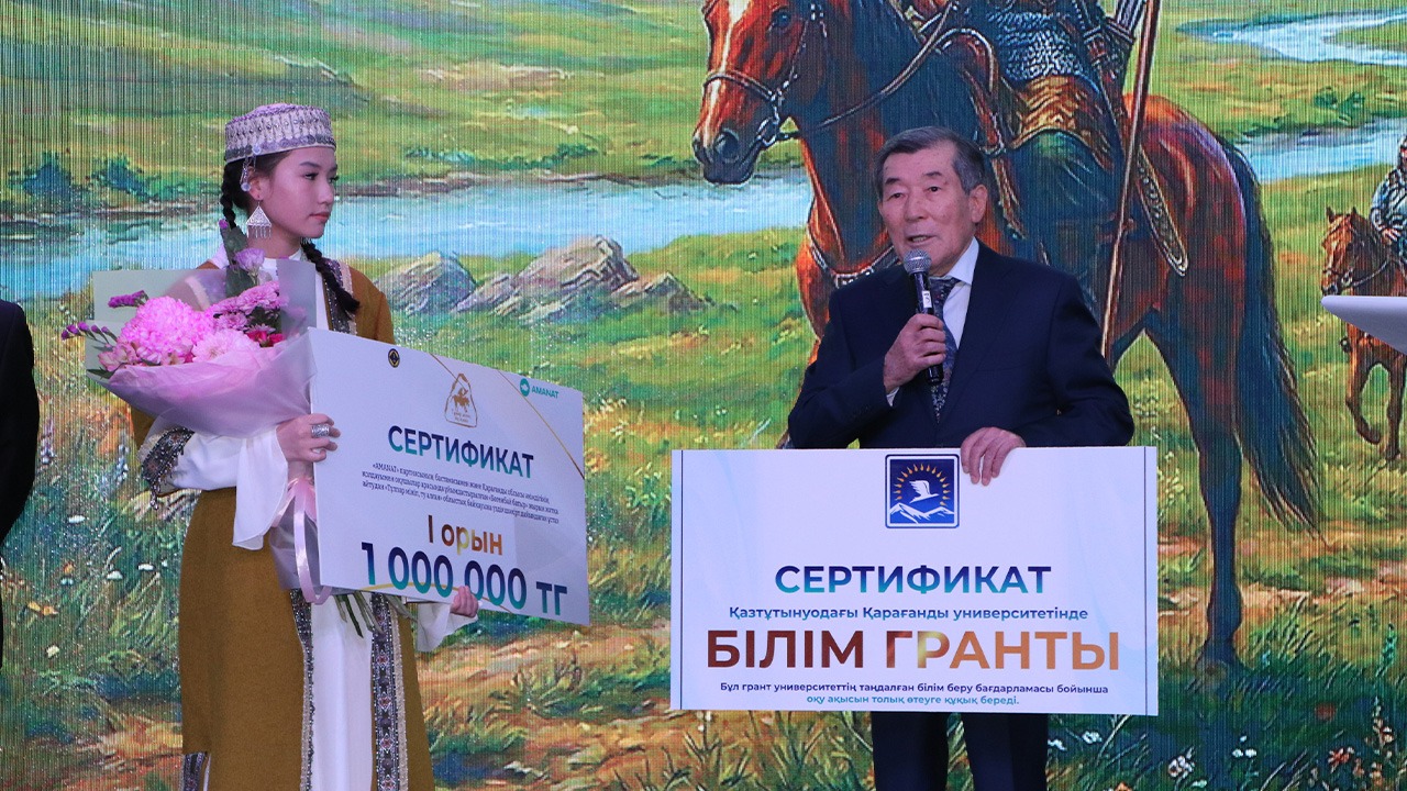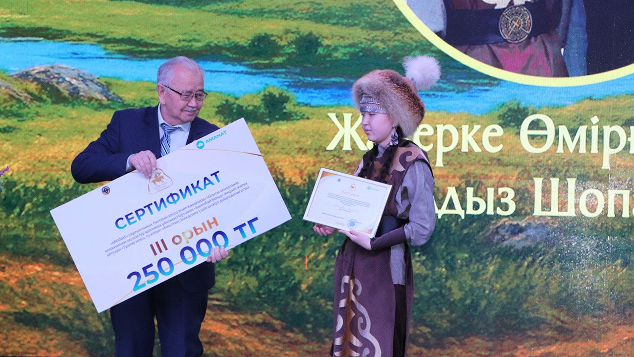 «Бөгенбай батыр» жырын жатқа айтып, танылған саңлақ, бірінші орынды қанжығасына байлаған Райана Әмірханова. Жеңімпазға 1 млн теңге мен дипломды Қарағанды облысы әкімінің орынбасарв Әлібек Әлденей табыстаса, жоғары оқу орнының грантын Қазтұтынуодағы Қарағанды университетінің ректоры Ерқара Аймағамбетов ұсынды. Жас жыршының алғырлығы мен жігерлілігін байқап, осы дүбірлі додаға дайындаған Толғанай Ерменбетова. Ұстазға 1 млн теңге және Ұлағатты істің қайнары, білімдінің айбары болған жеңімпаз ұстазға автокөліктің кілті табысталды.