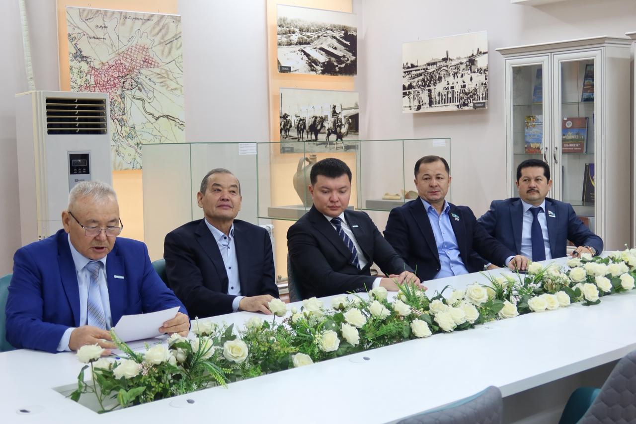 Делегация құрамында Мәжіліс депутаты Олжас Құспеков, «AMANAT» партиясының Шымкент қалалық филиалы Атқарушы хатшысының орынбасары, фракция жетекшісі, мәслихат депутаты Талғат Балтабаев, партия филиалының жанындағы Партиялық бақылау комиссиясының төрағасы Ғани Ташқараев, «AMANAT» партиясы Қаратау аудандық филиалының төрағасы Бауыржан Кеңесұлы, «Ауыл» партиясы қалалық филиалының төрағасы Ғани Қарабеков, қалалық мәслихат депутаты Лазиз Сулайманов, сондай-ақ ардагерлер мен қоғам белсенділері болды.