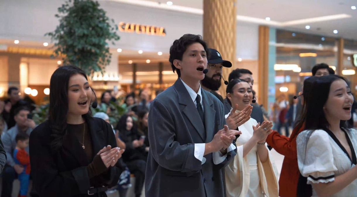 Әрбір қайырма сайын орындаушылар саны көбейіп, көрермендер үшін тосын әсерге толы көрініс қалыптасты. Осылайша қарапайым музыкалық бастама біртіндеп ауқымды хормен орындалатын әсерлі қойылымға ұласып, сауда орталығының кеңістігін қуаныш пен мерекелік көңіл-күйге бөледі.