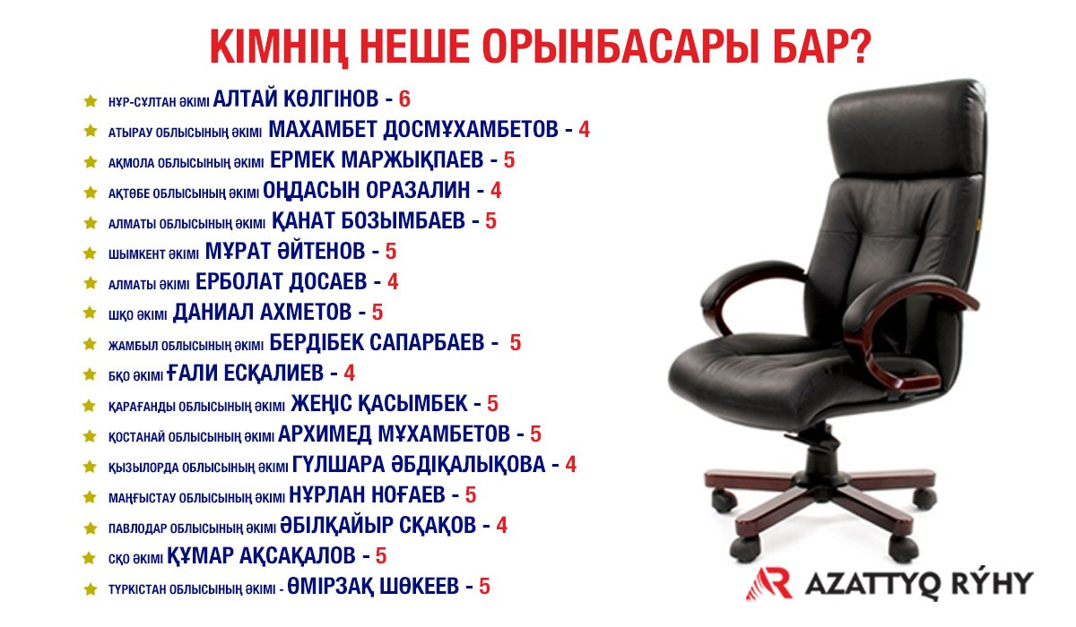 Республикалық маңызы бар қалалар мен облыс әкімдері кемі 4 орынбасар «ұстап» отырғаны анықталды, деп хабарлайды Azattyq Rýhy.