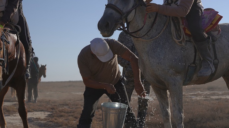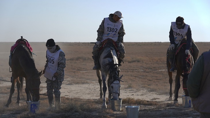 «Ең бірінші жақсы келе жатқан команда – Ақтөбе облысы. Күні кешеге дейін 5 шабандозбен келе жатыр еді, қазір 4 қатысушымен қалды. Аттарының барлығы бірінші кезеңде ұпай санымен де, жалпы жағдайымен де алдыңғы орыннан көрінді. Одан кейін ыстық жаққа жақындаған соң Маңғыстау командасы мен Жетісу командасының жүйріктері қайтадан қарқын ала бастады. Уақыт жағын жақсартып жатыр. Ал Жамбыл облысы 700 шақырымнан кейін уақыт ұту үшін бір күндік межені ең аз уақытта өткен команда ретінде рекорд жаңартты. Олар межелі екінші күні 7 сағатқа жетпейтін уақытта 100 шақырымды басып өтті», - деді төреші.