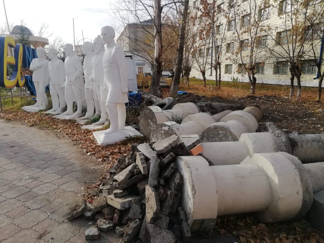 6 ескерткіш жарты жылдан бері мәдениет үйінің алдында қаңтарылып тұр. Қалған алтауының қайда кеткені беймәлім. Олардың қатарында Сәбит Мұқанов, Ғабит Мүсірепов, Сәкен Сейфуллин сынды жазушылардың бейнесі бар. Мүсіндердің тағдыры не болғанын қалалық әкімдік өкілдері де айта алмады. Тіпті зиялылардың «жоғалып» кеткенін өздері де білмеген. Ақпарат алу үшін бірнеше күн күтуге тура келді. Алайда, көп сауал жауапсыз қалды.